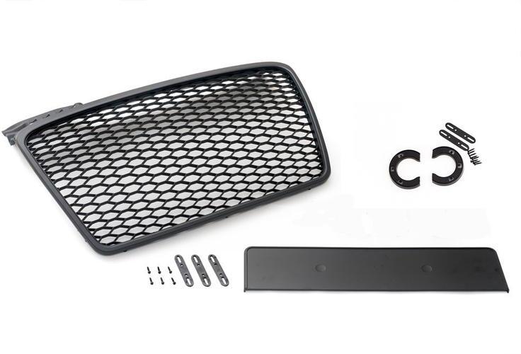 Méretpontos ABS (műanyag) anyagú matt fekete hűtőrács AUDI A4 B7 8E 8H 2004/11-2009/02 közötti típushoz. Csak a gyári lökhárítóra passzol, nem jó az Sline, S4 és RS4 típusokra. 2db simple fix rendszámtábla tartókeret és embléma tartó tartozék hozzá. PDC és PDC nélküli kivitelbe is szerelhető, PDC adapter nem tartozékAz ár 1szettre vonatkozik.